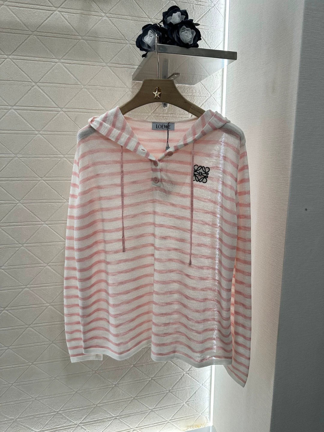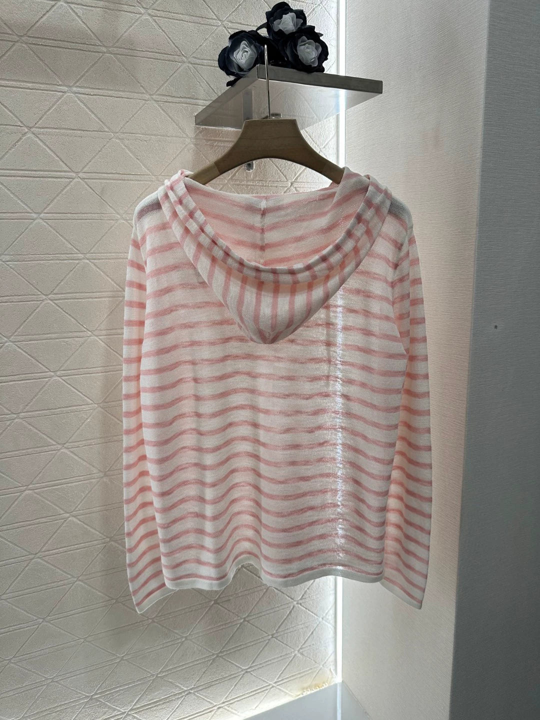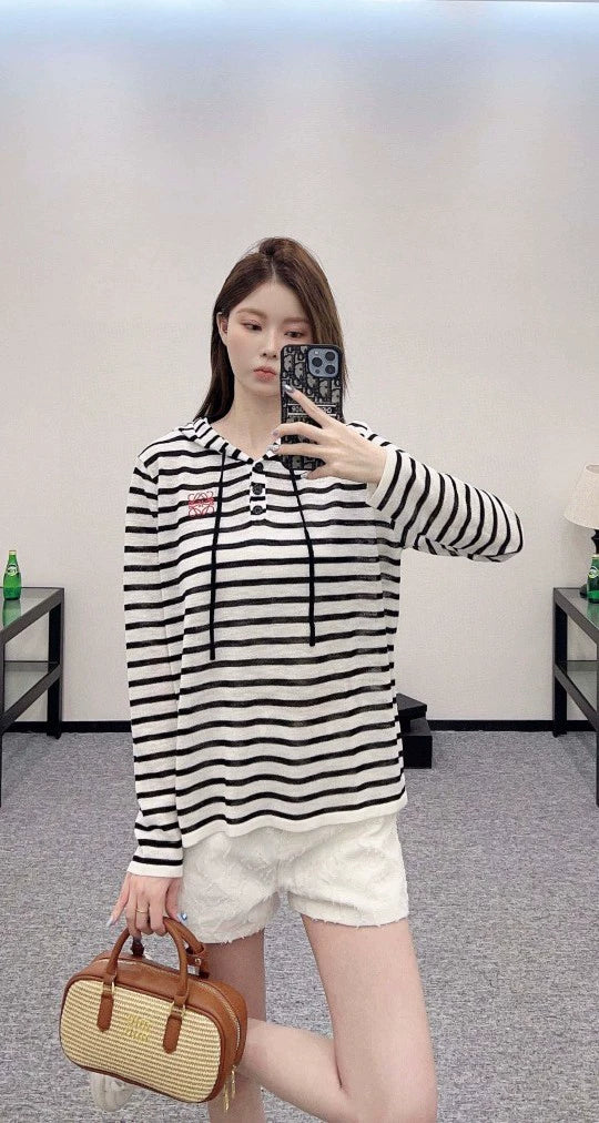 LO 25 New Hooded Striped Knit Sunscreen Top