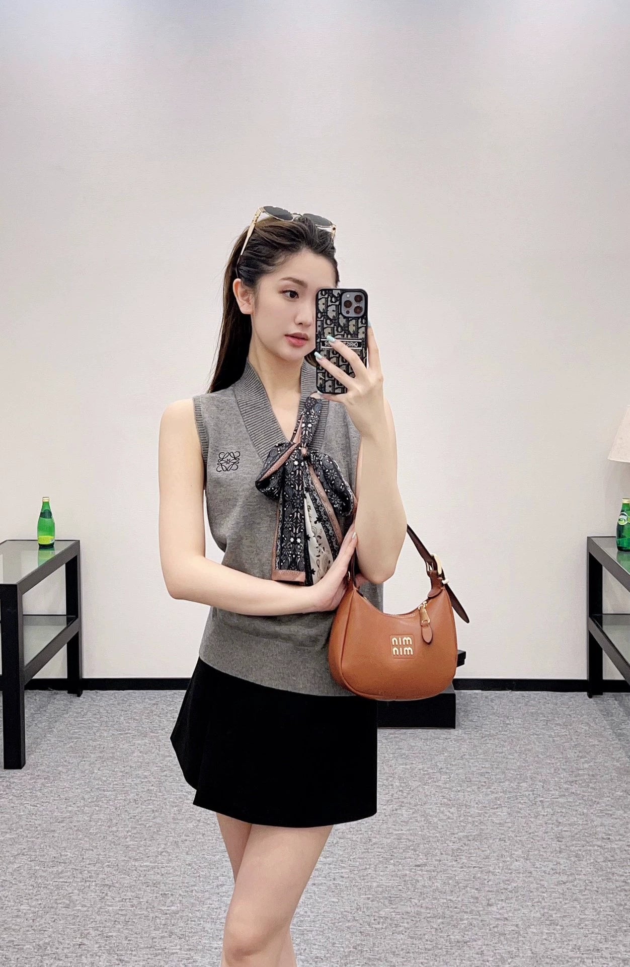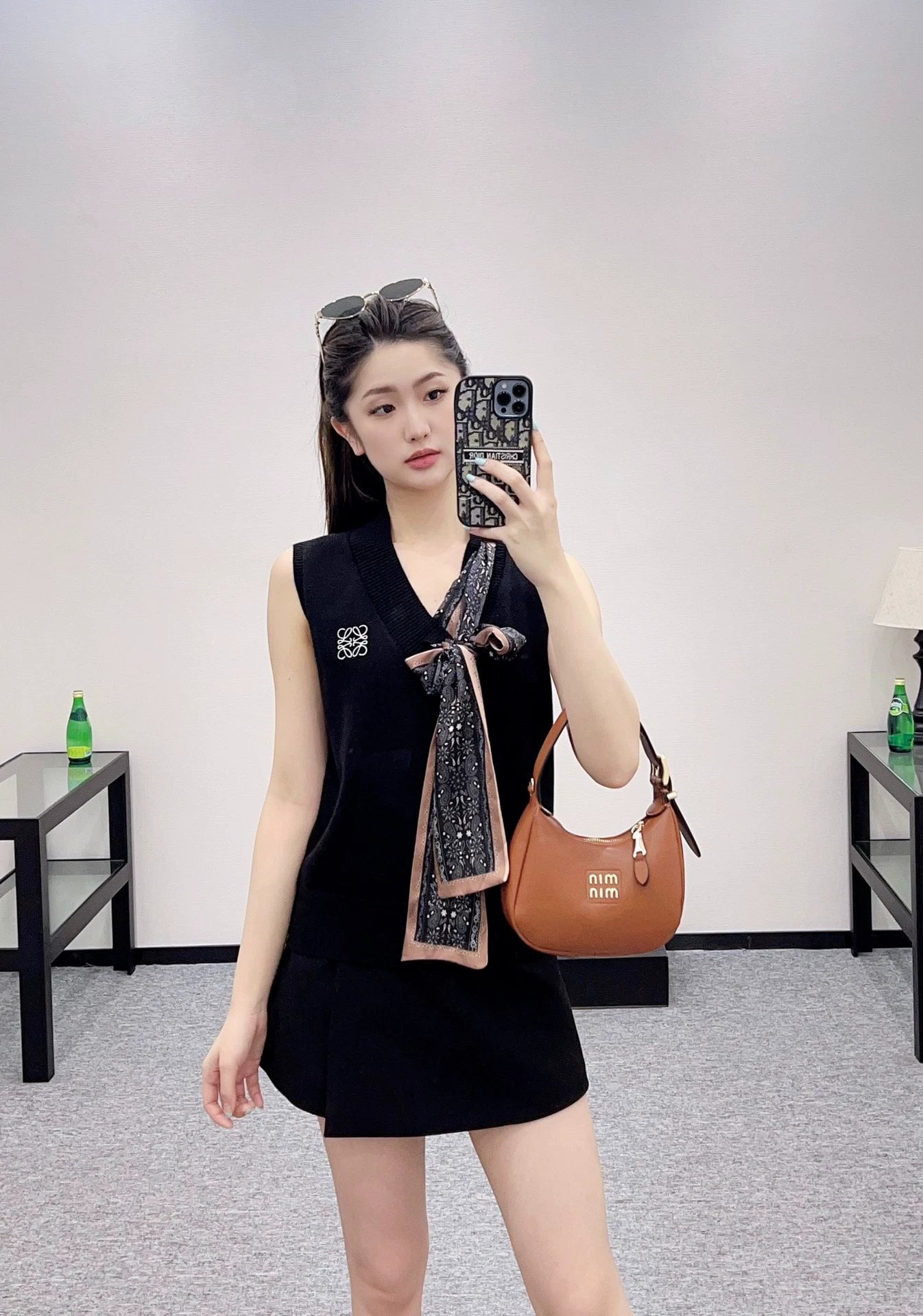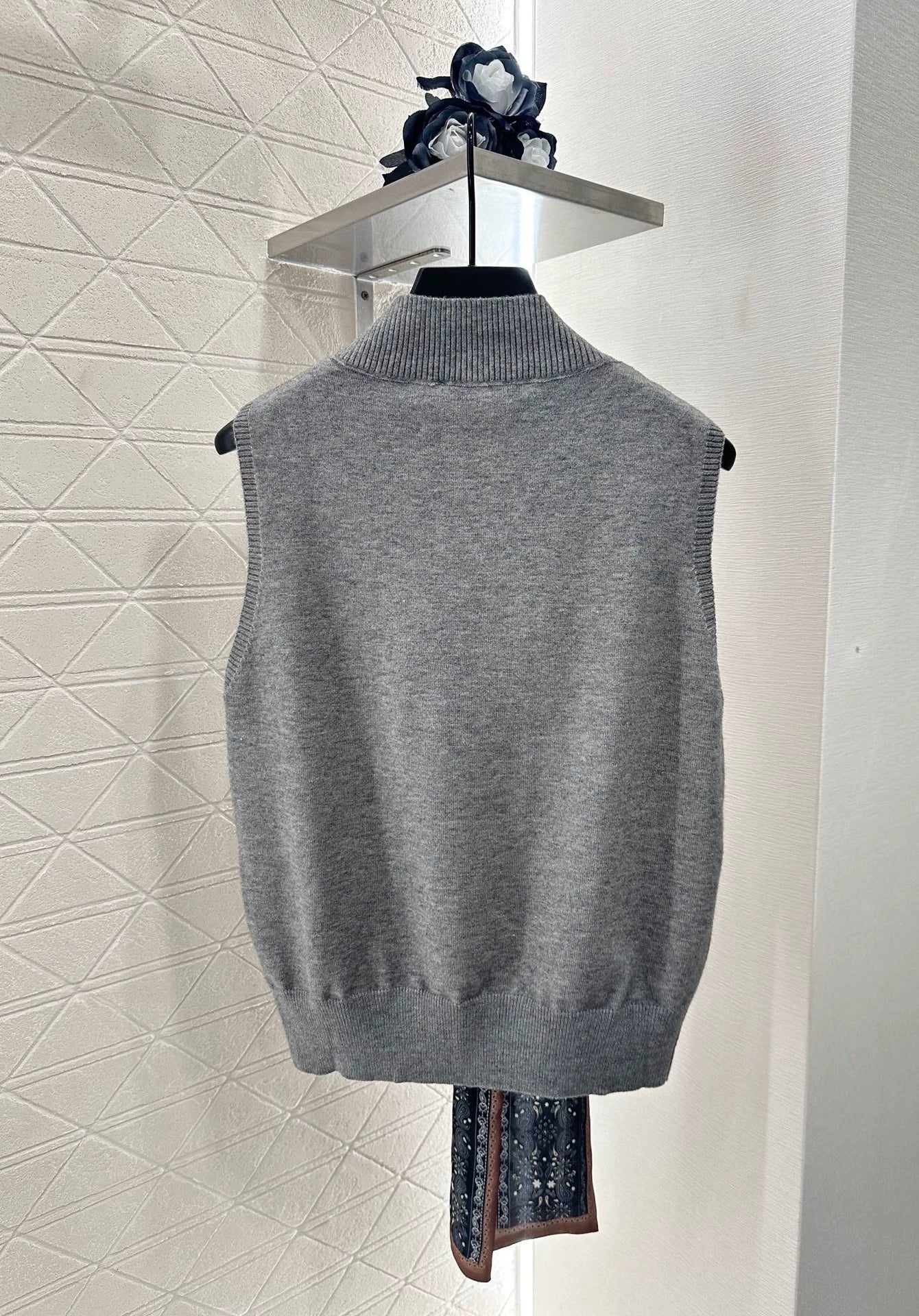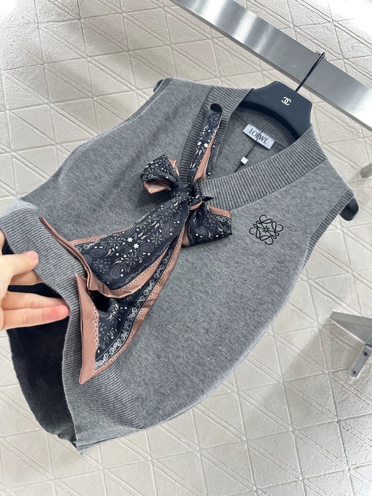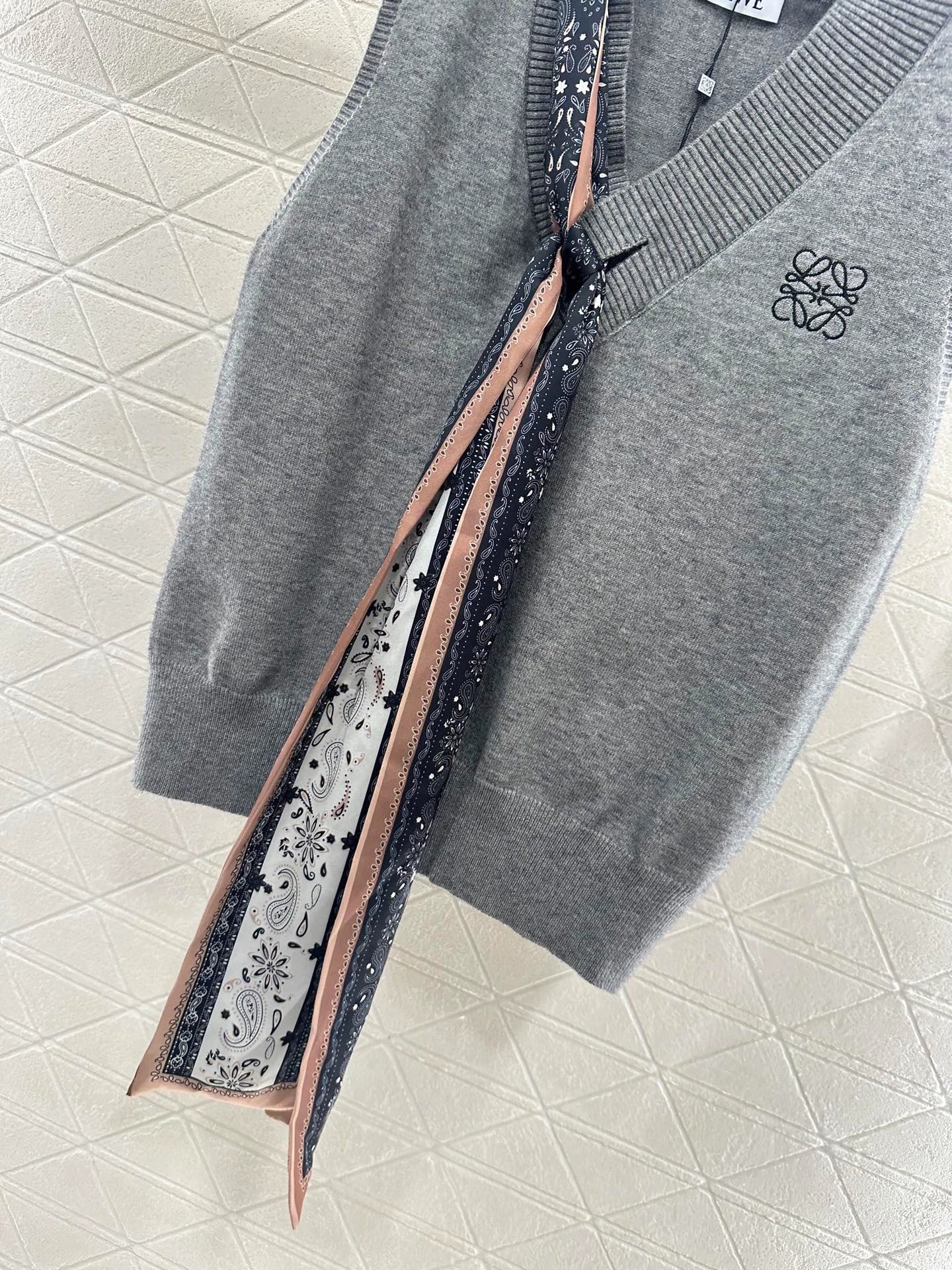 Custom YB wool knit fabric is soft and supple, dense and delicate. This V-neck vest features a straight shoulder design. Wide, ribbed, ready-to-wear elastic hems highlight the textured details. A contrasting ribbon accents one side of the collar, complementing the bow tie design, create a refined, academic vibe. A totem logo accentuates the brand's aesthetic. The slim fit creates a slimming and stylish look. Perfect for both fall and winter wear alone or as a layer. Custom fabrics and accessories are available. Look for the highest quality version.