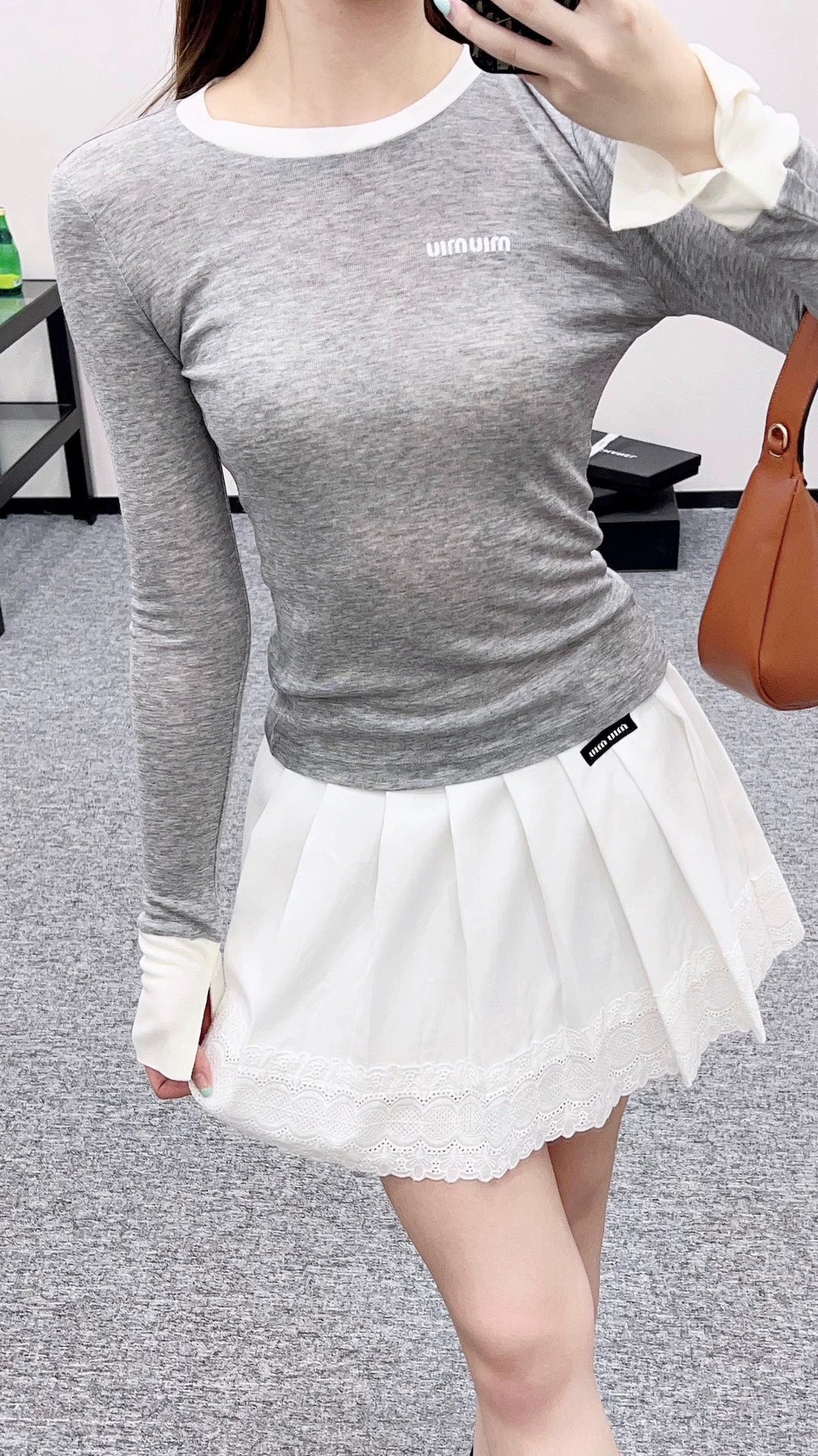 Custom YB twill cotton material for a comfortable and breathable fit. High-waisted pleated skirt with neat pleats and a slightly flared A-line silhouette. A monogrammed logo at the waist highlights the brand's style. A stylish, youthful look. The thoughtful, mid-length hem features lace trims to showcase a slim waist and long legs. Pair with a top from the collection for a sweet, youthful look. Custom fabrics and trims. Look for the high-end version.