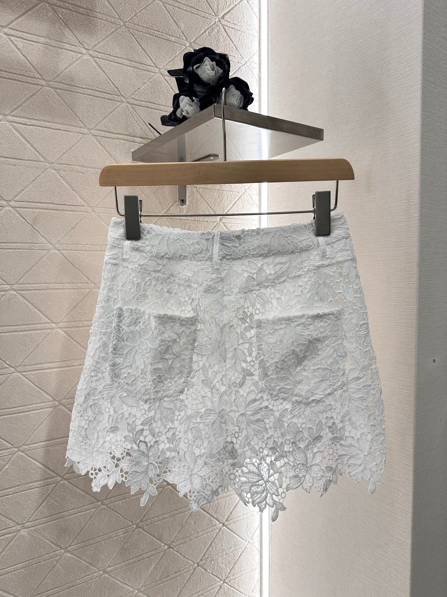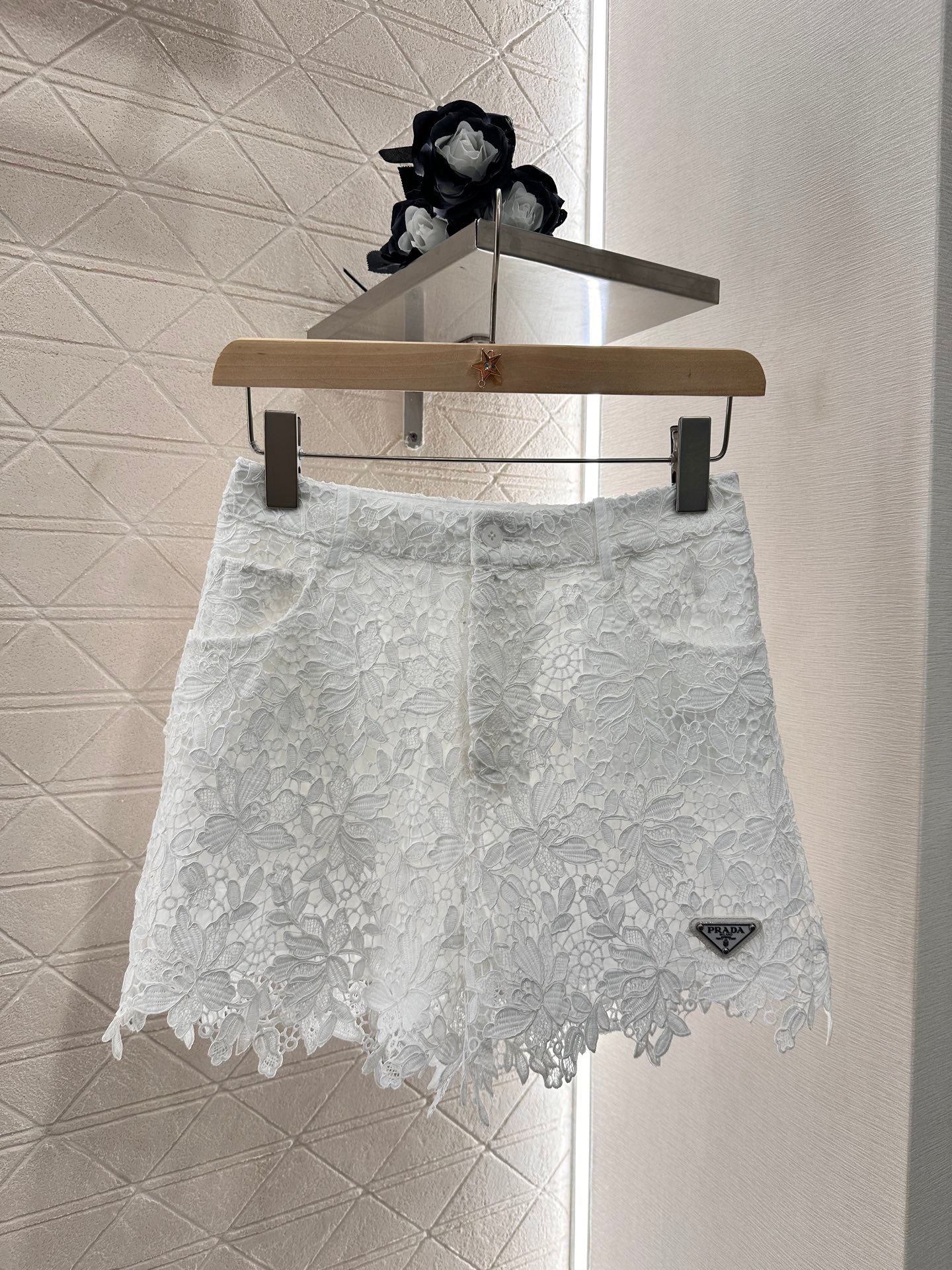 Customized YB imported water-soluble material Soft and delicate Not easy to tear Comfortable and good to wear Skeleton short sleeve ➕ lining zipper Throughout the body of the water-soluble fabric wrapped torso Gorgeous heavy-worked obvious texture with the triangular logo embellishment More brand style Irregular processing rich sense of hierarchy Lower half of the body with its own lining to prevent the light from escaping Full of aging chic retro style Straight leg pants modified waist and crotch more skinny more casual slack style Customized fabrics and auxiliary materials Recognize the version Higher version