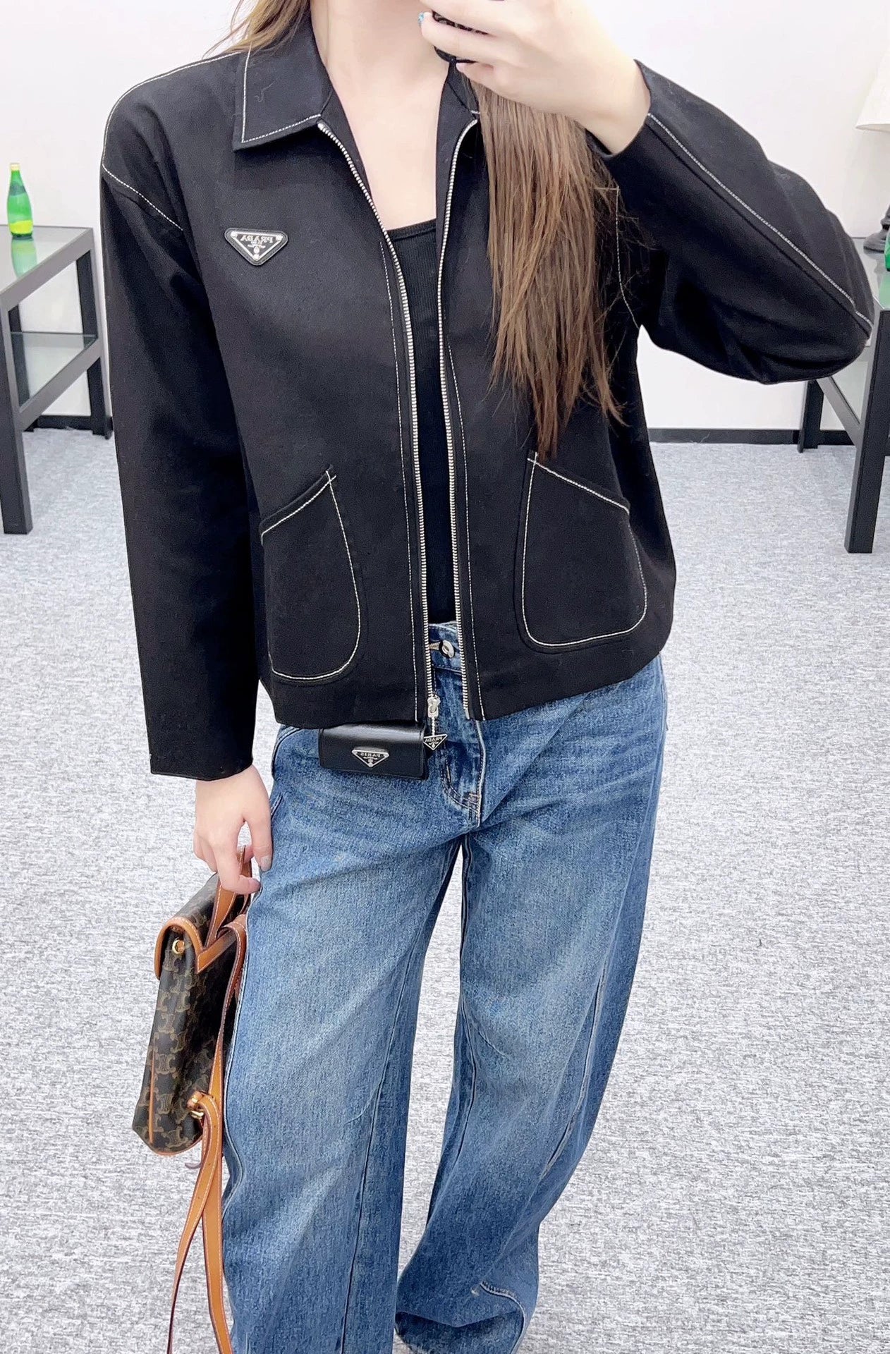 P 25 Zippered Outline Lapel Jacket