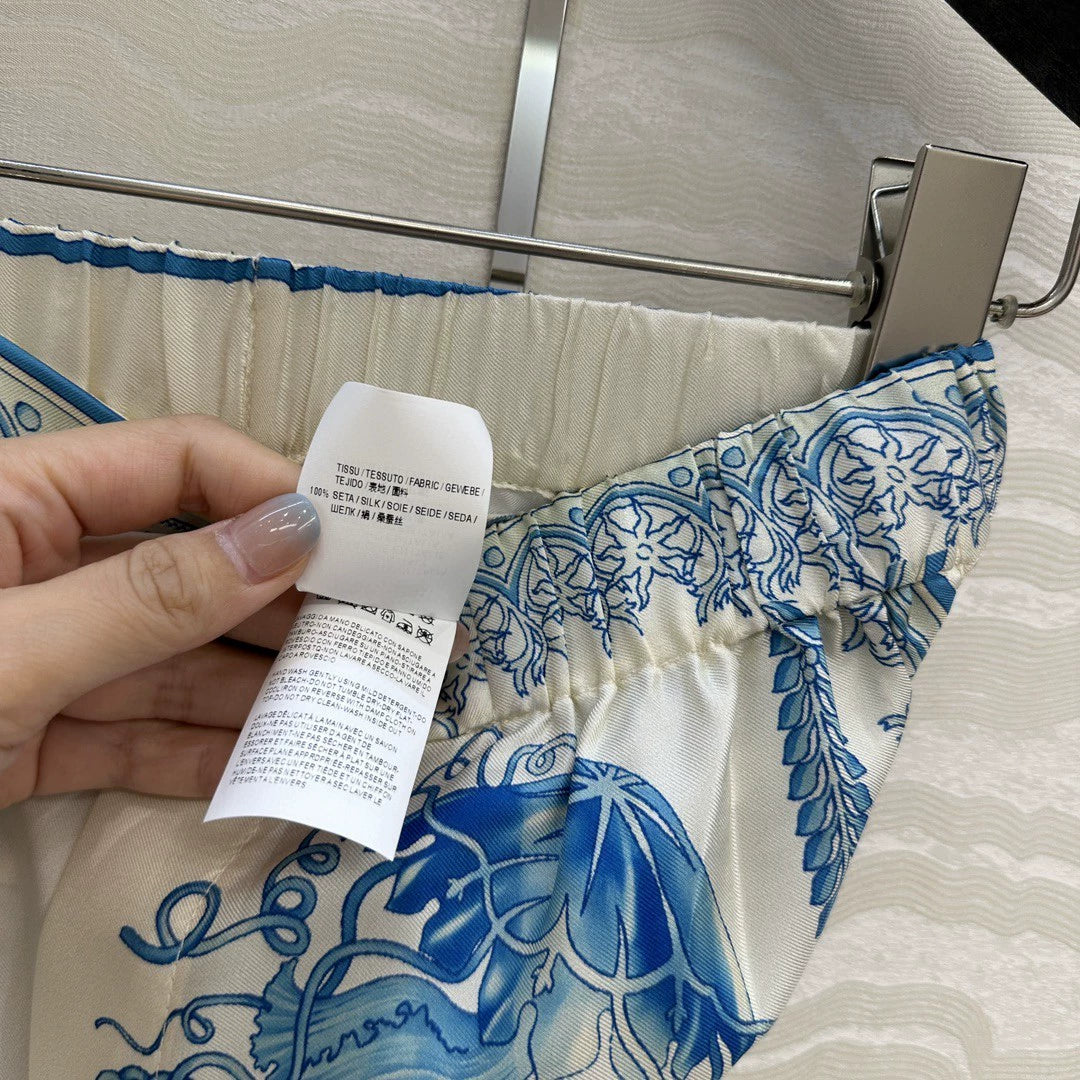 Ve 25 New Positioning Printed Silk Wide Leg Straight Leg Pants