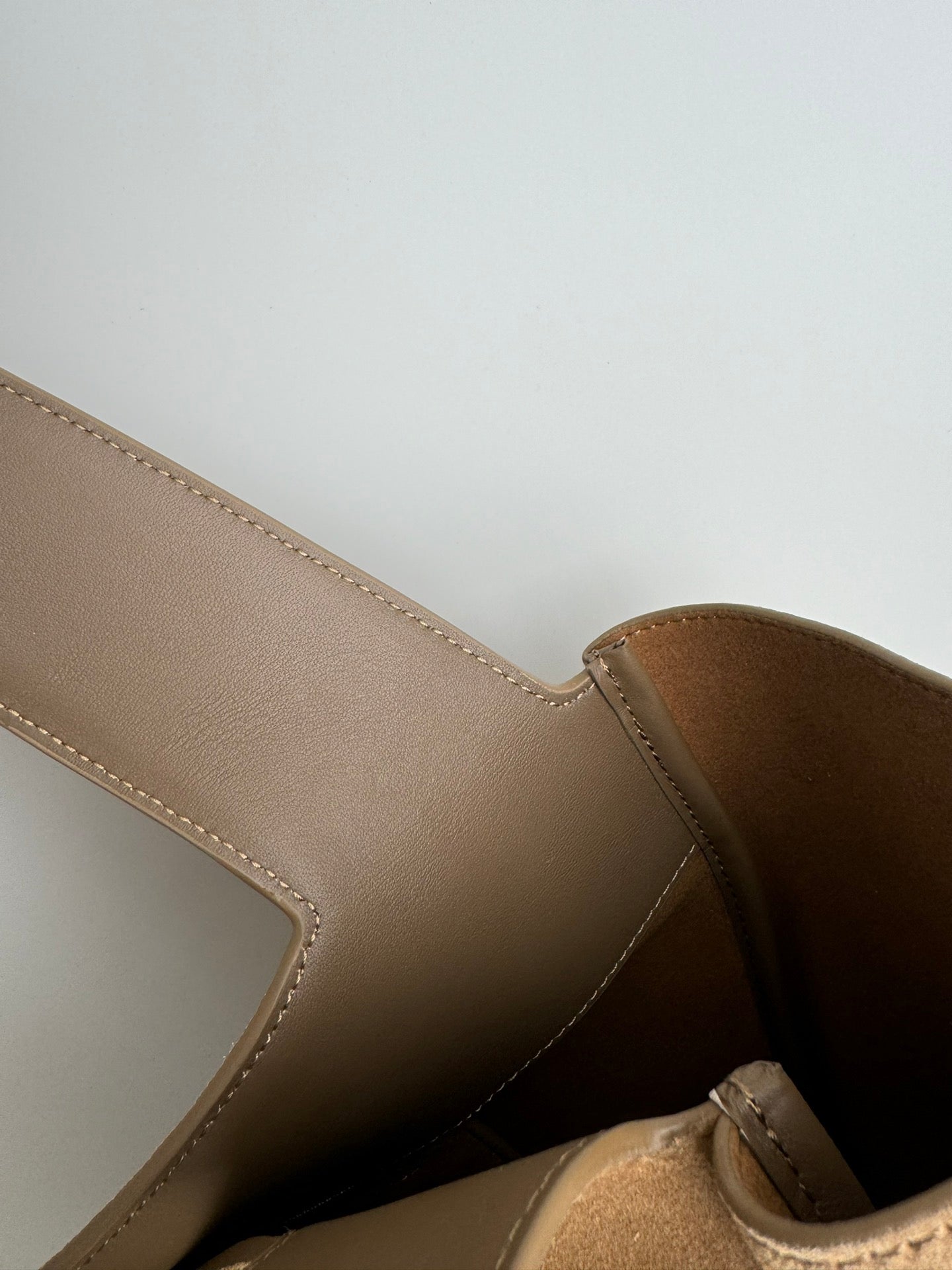 Decorated with LE CASSANDRE. Internal lace-up design, both sides can be folded or unfolded as needed. Deer leather, suede lining, bronze accessories, open bag mouth, LE CASSANDRE hook closure design