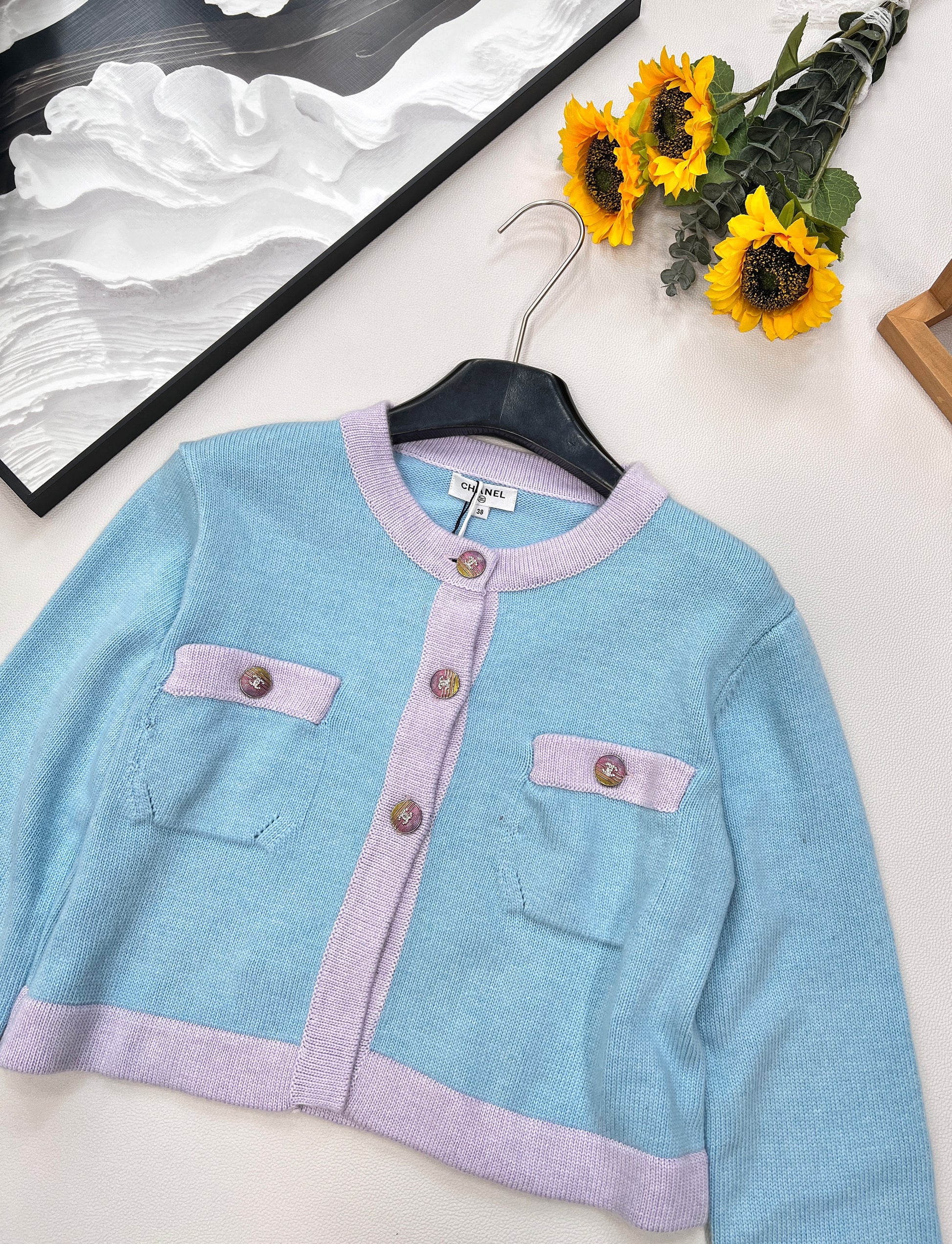 C 24 classic macaron color four-pocket contrast color knitted cardigan