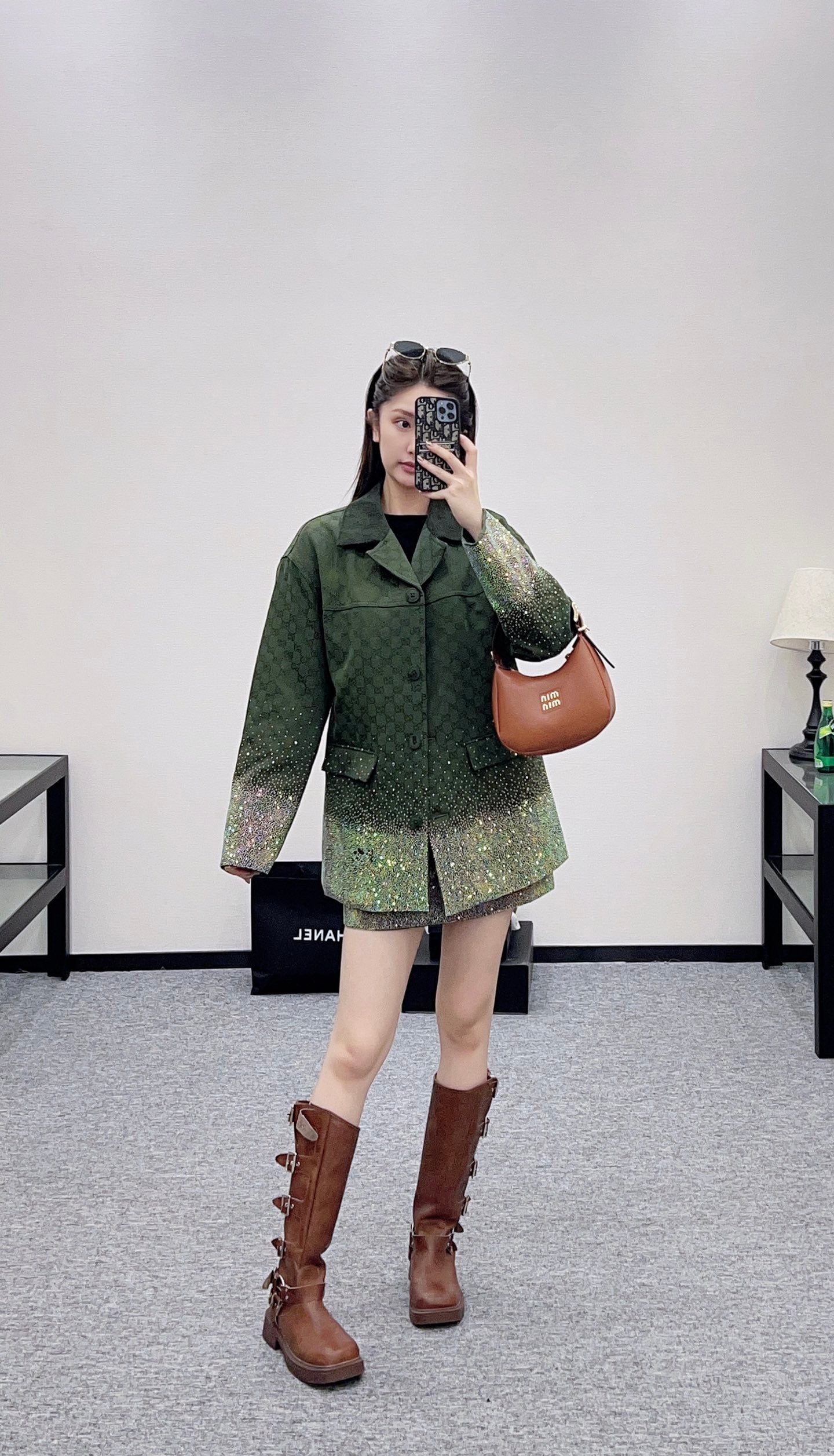 Gu 25 Hot Diamond Padded Jacket + Short Skirt Set