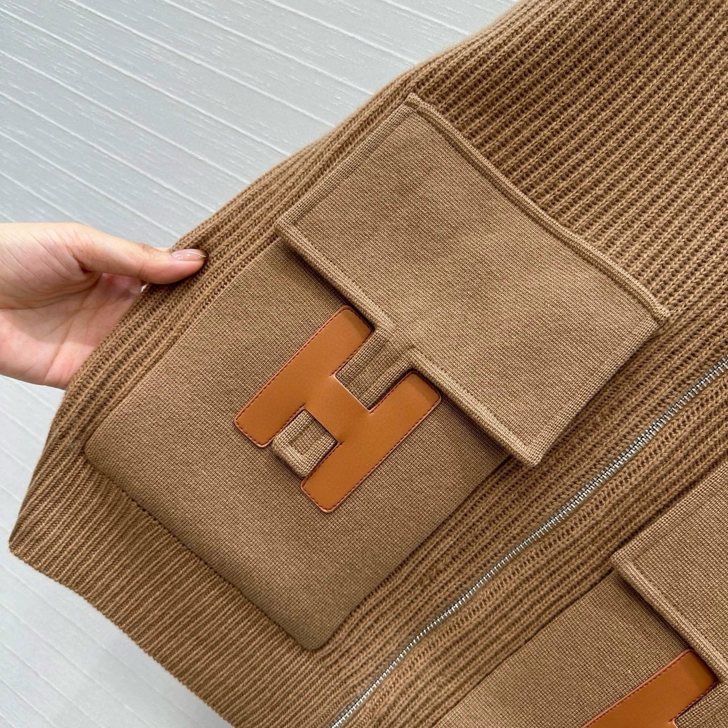He 25 Mid-length cashmere knitted zip-up jacket(100% cashmere BROWN/GRAY)
