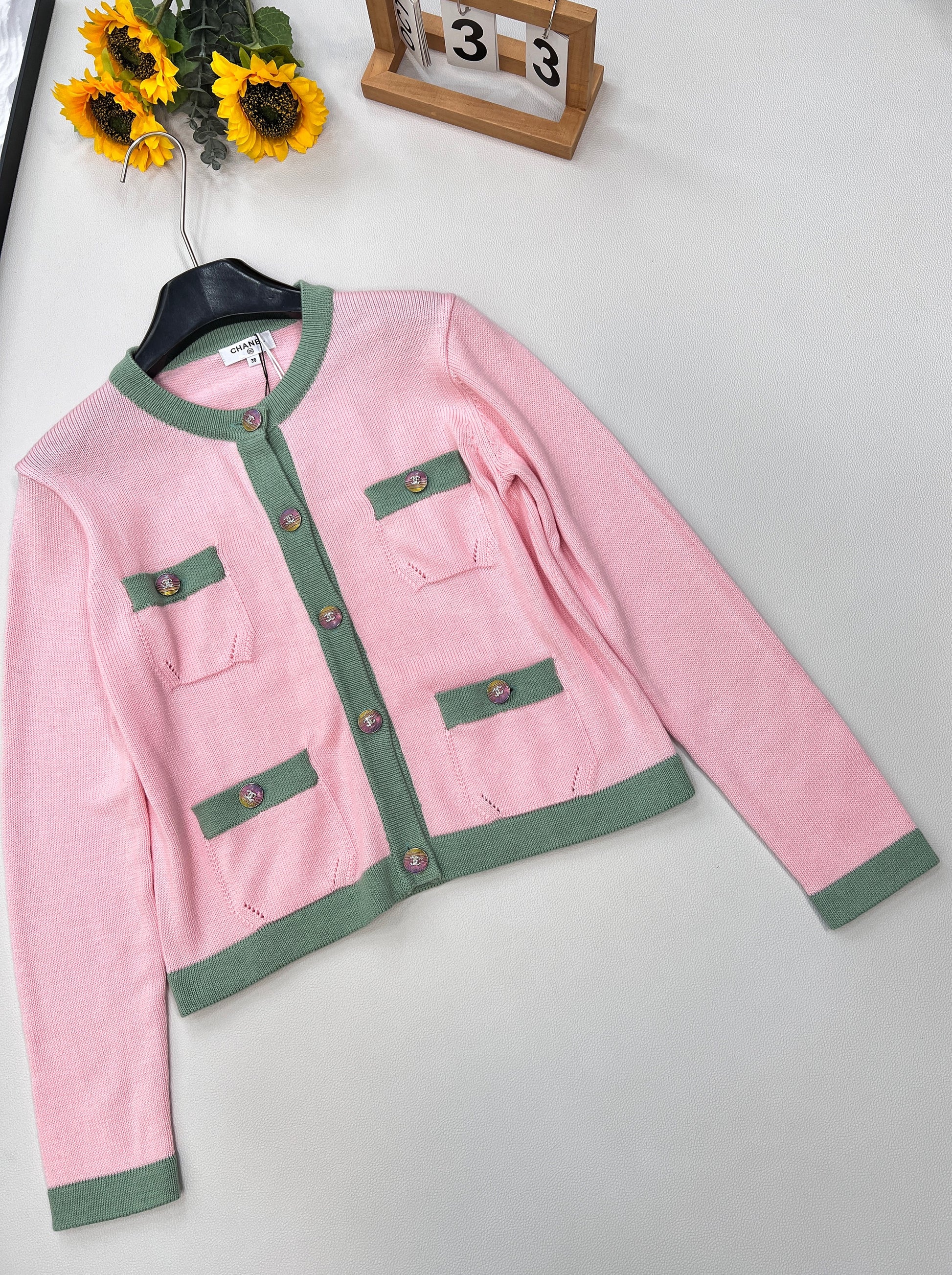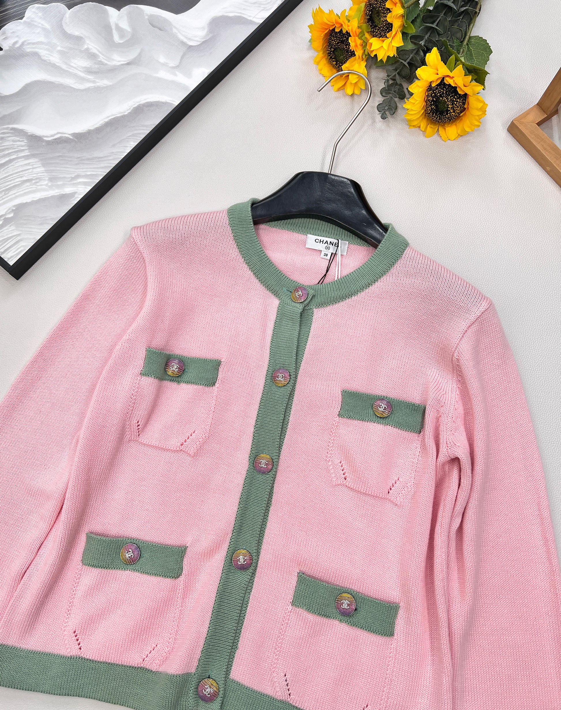 24 classic four-pocket contrast color cardigan is back~ The pink and green color is fresh and advanced, short + four pockets, with a skirt, it is the hostess of the garden afternoon tea, with jeans, it instantly becomes a street noble feeling, the knitted soft and sticky does not prick the flesh, you will earn money if you buy it! ”