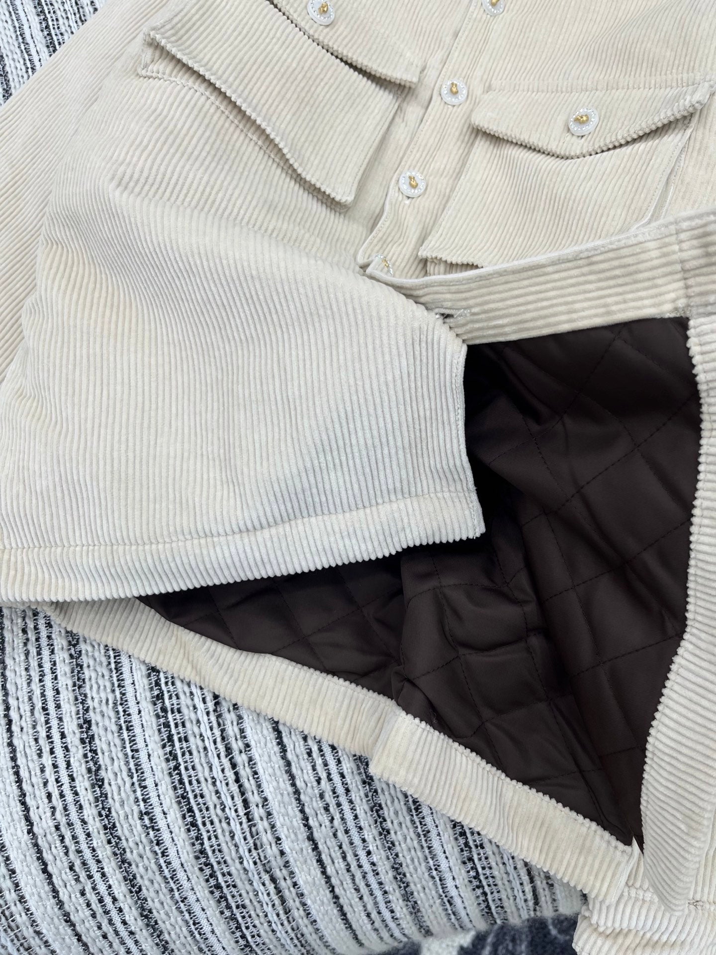 C 25 Vintage Button Corduroy Puffer Jacket(BEIGI/GREEN)