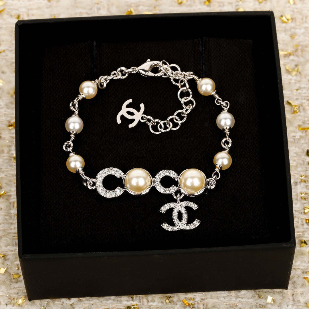 C Rhinestone pearl coco bracelet