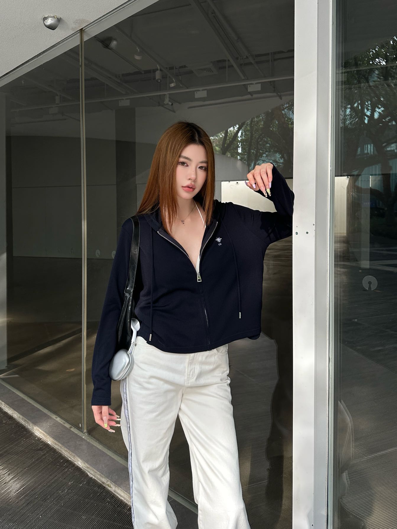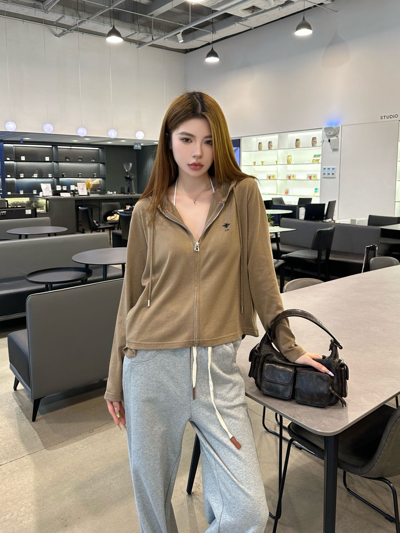 Di 25 New hooded drawstring zip-up top(NAVY/GRAY/KHAKI)