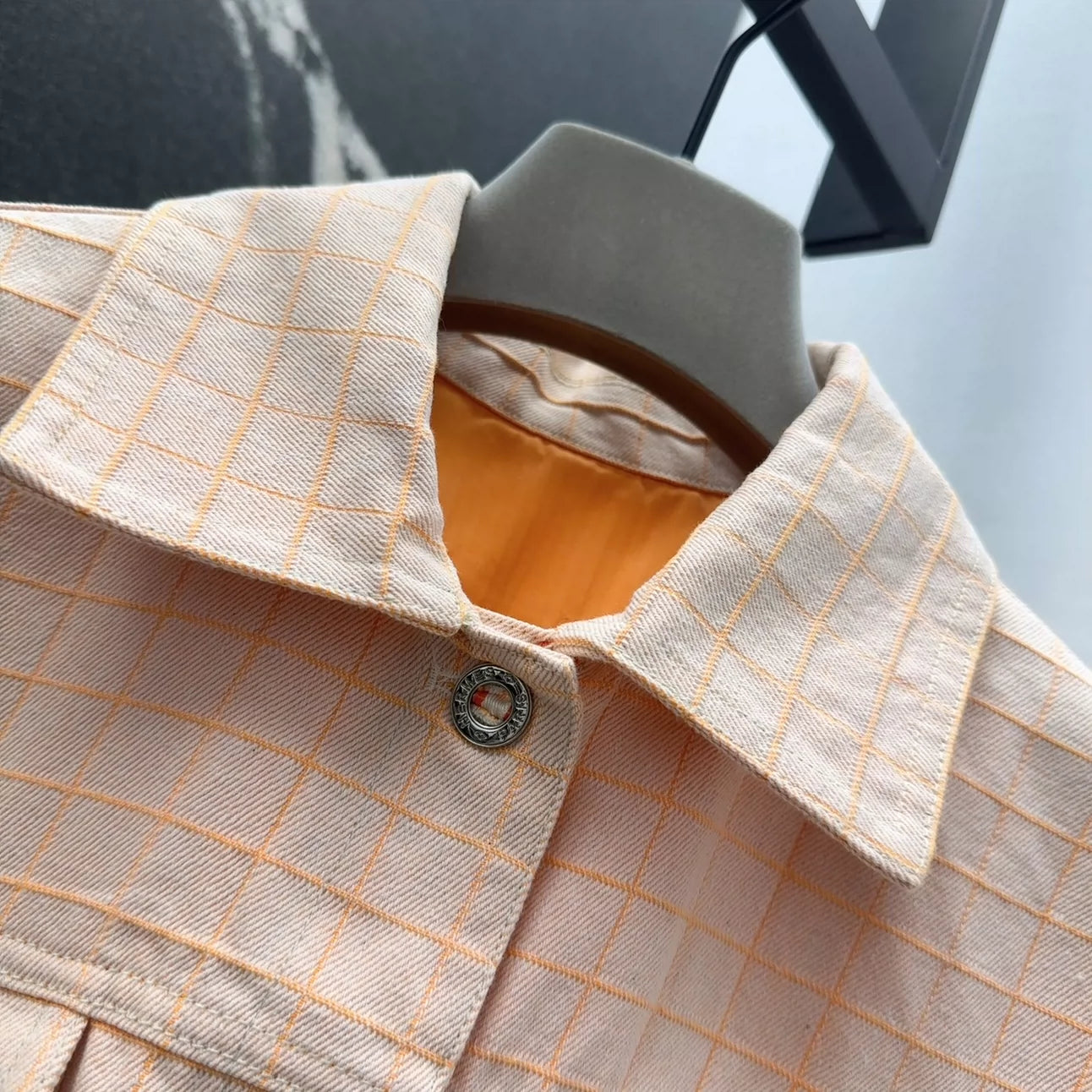 H 25 New Early Fall Classic Plaid Double-Pocket Denim Jacket